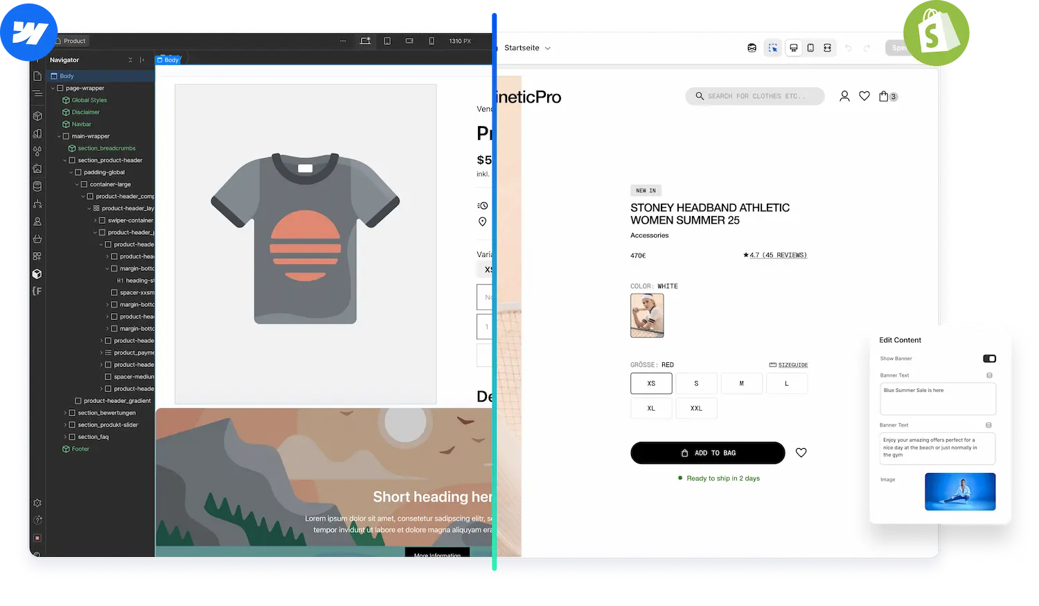 Create a fully working Shopify 2.0 Theme with Webflow. Manage in Shopify, 100% scalable.